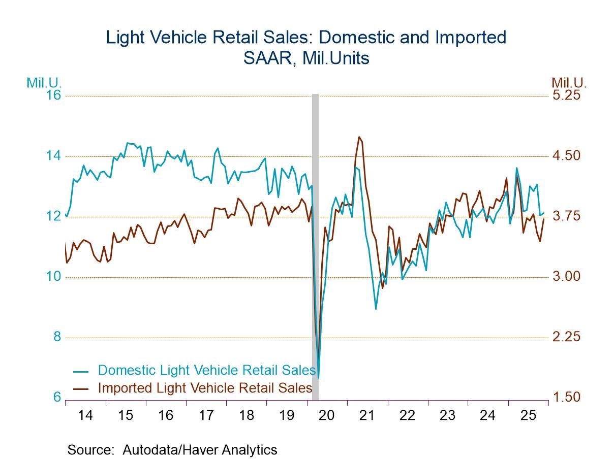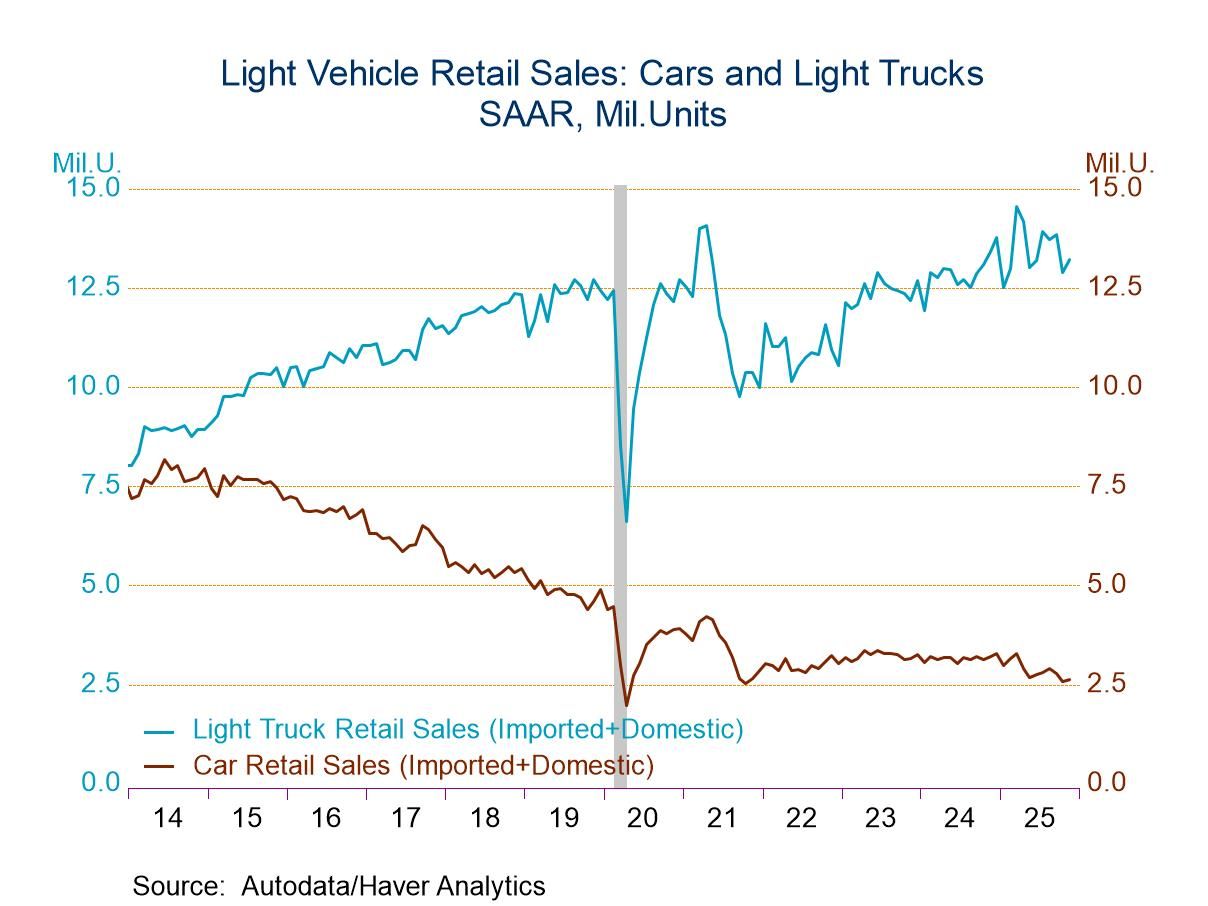 Light truck sales rose 2.5% (-1.5% y/y) in November to 13.22 million units, after declining 6.9% in October. Purchases of domestically-made light trucks improved 0.7% (-0.3% y/y) to 10.17 million units, after falling 7.9% in October. Sales of imported light trucks strengthened 8.9% (-5.0% y/y) to 3.05 million units, the highest level in three months, after a 2.8% October decline.