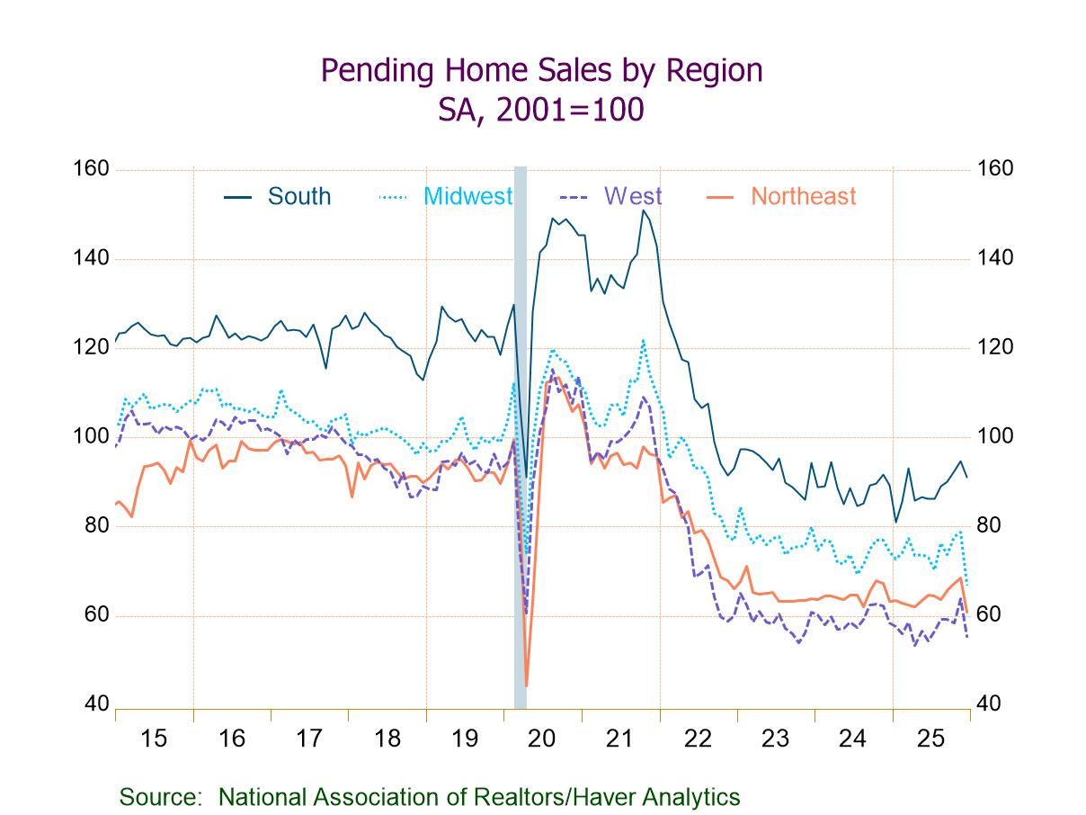 - Home sales y/y down in the Northeast, Midwest, and West, but up in the South (+2.0%).