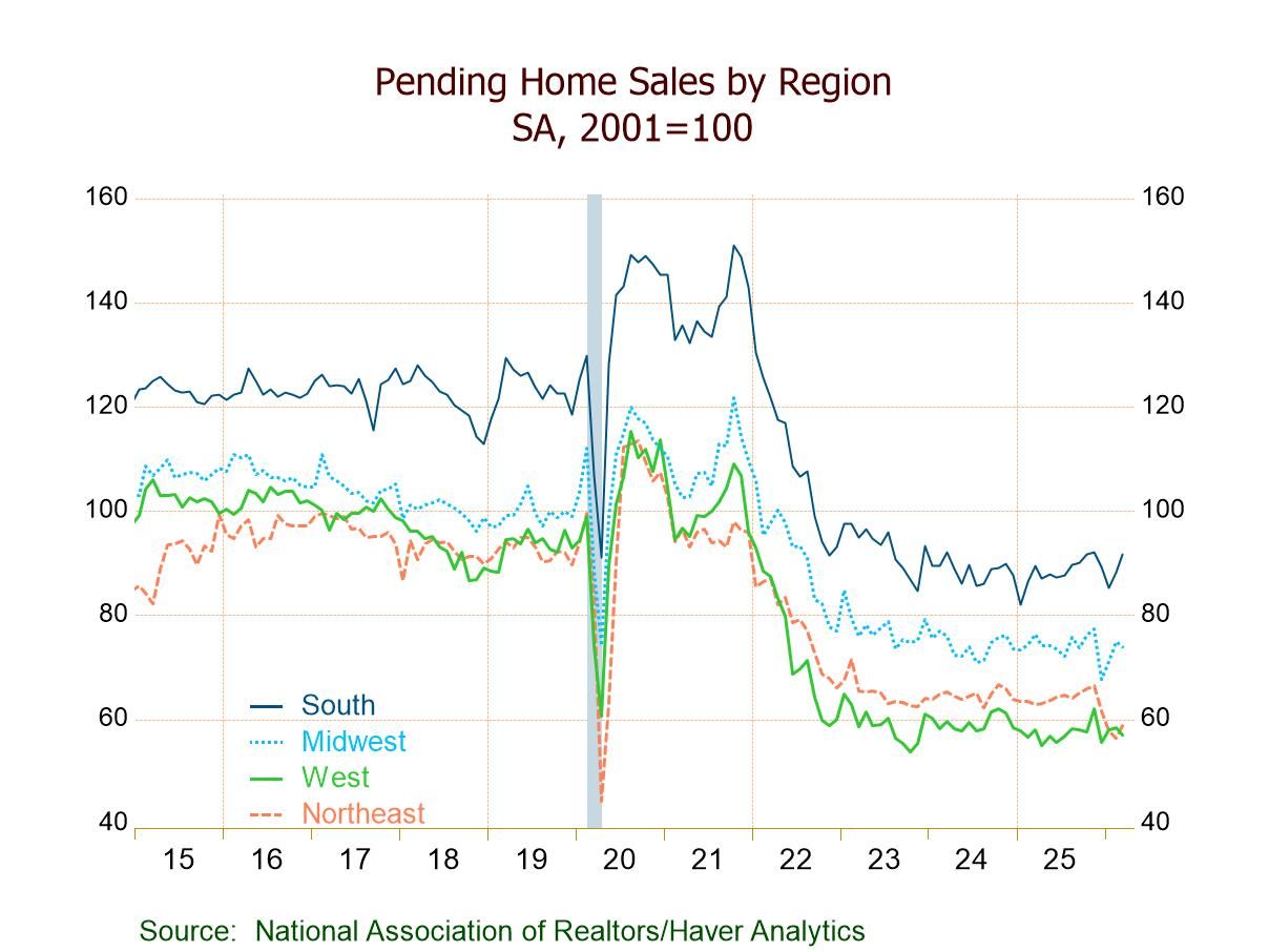 - Home sales m/m up in the Northeast (+4.4%) and South (+3.9%); down in the Midwest (-1.3%) and West (-2.6%).