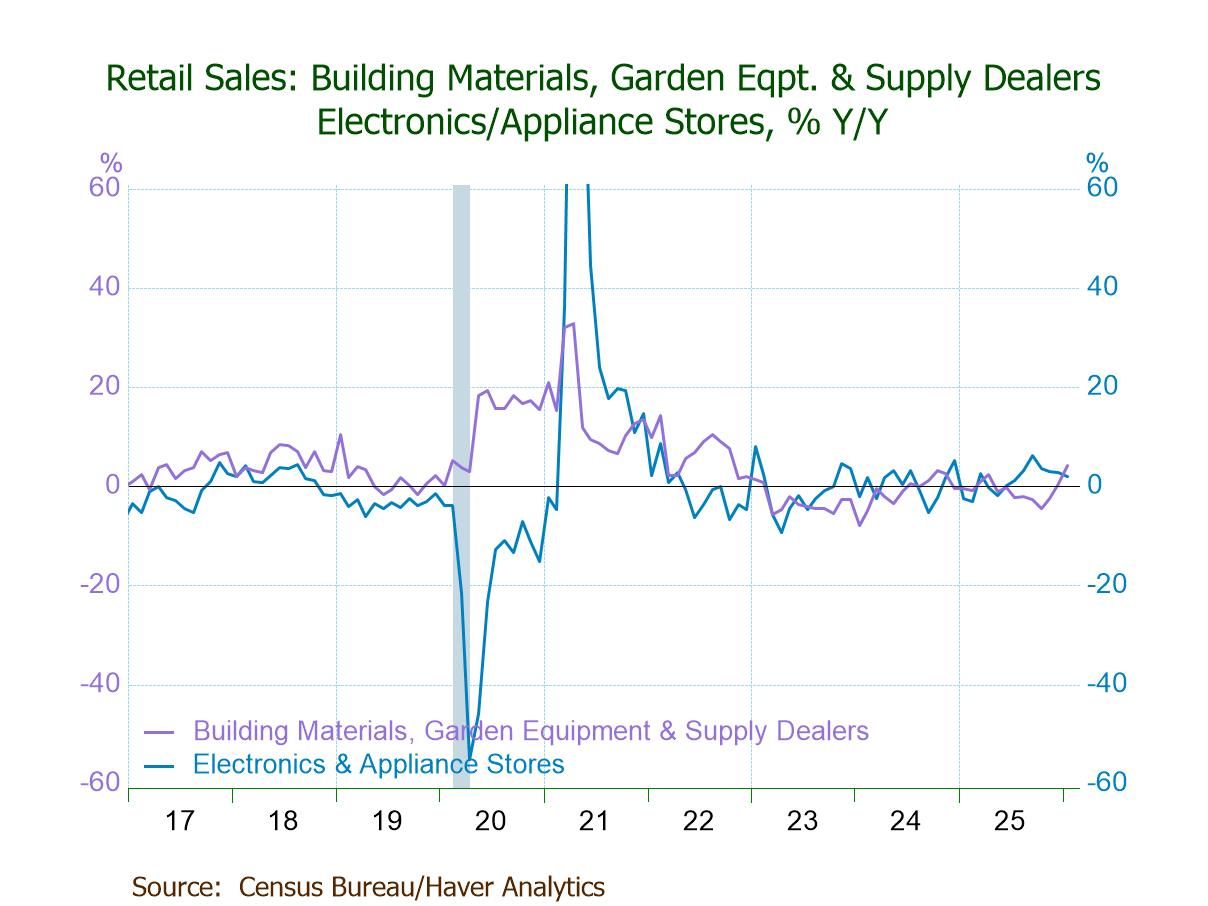 - Gains m/m: misc. stores (+2.0%), nonstore sales (+1.9%), furniture stores (+0.7%), bldg. materials (+0.6%).