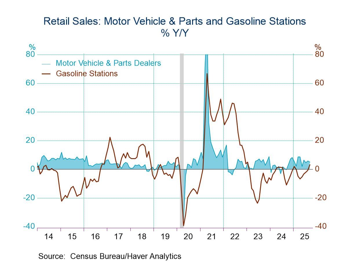 Motor vehicle & parts dealer sales declined 0.3% (+5.1% y/y) during September after rising 0.6% in August and improving 1.6% during July. This compares to unchanged unit sales of motor vehicles last month which followed a 0.6% August decline. Gasoline service station sales rose 2.0% (3.1% y/y) in September after rising 0.4% in August. Gasoline prices rose fell 0.7% (-1.7% y/y) during September after rising 0.8% in August. Sales of building materials & garden equipment edged 0.2% higher (-2.4% y/y) after rising 0.3% in August.